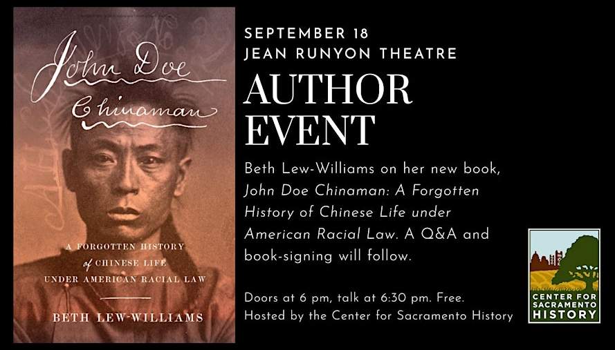 On September 18, 2025 author Beth Lew-Williams spoke on her new book "John Doe Chinaman: A Forgotten History of Chinese Life under American Racial Law." Williams conducted some of the research for her book in our archives. A Q&A and book signing followed the talk held in the Jean Runyon Theatre at the Memorial Auditorium.